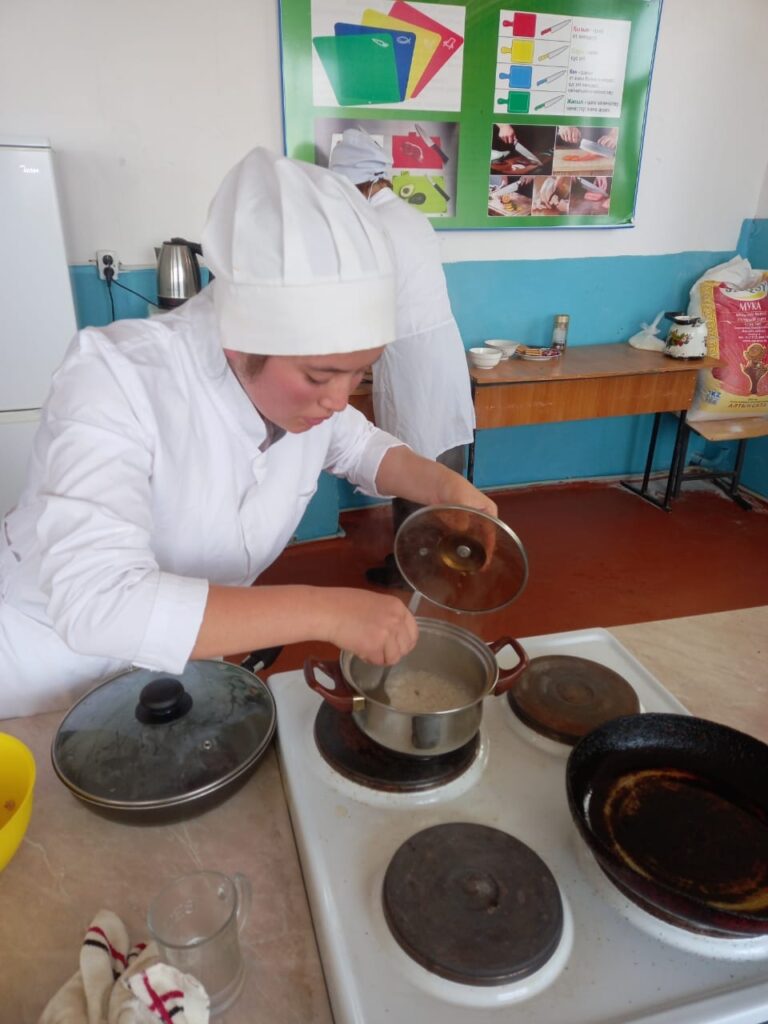 «Аспазшы» біліктілігі бойынша 2019-2021 жылдарға арналған жол картасының 51, 52 тармағына сәйкес «Аспаздар » зертханасында «World Skіlls — 2021» дағдыларын меңгеру мақсатында ұйымдастырылған сайыс өтті. Сайысқа № 18 колледж «Аспазшы» біліктілігі бойынша білім алушы 1-2-3 курс студенттері арасынан 5 үміткер қатысты. Олар: 3- курстан – Қошқаров Дінмұхаммед, 2 курстан – Үсен Балжан мен Кендірбай Мұрат, 1 – курстан – Әбдіәшім Ілияс пен Аман Нұрай.Үміткерлер №1 модуль – Көкөніс крем сорпасы, №2 Модуль — Котлет масса өнімін көкөніс гарнирімен және тұздықпен даярлау тапсырмаларын орындады. Оларға колледж әдіскері — Құлжан Сәлімбек ағай мен аға шебер — Ордабаев Нұралы ағай сарапшы болды.Жарыс нәтижесінде жеңімпаз 3- курстан – Қошқаров Дінмұхаммед болды.Аға шебер — Ордабаев Н. өз сөзінде студенттердің жұмыс барысындағы қателіктеріне тоқталды. Сондай – ақ студенттердің келешегіне ақ жол тілей отырып, чемпионат туралы , облыстық жарыстар туралы мысал келтіріп, үздіктерге сәттілік тіледі.
