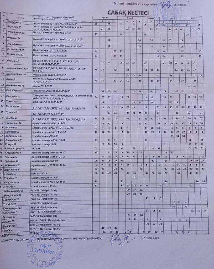 Сабақ кестесі